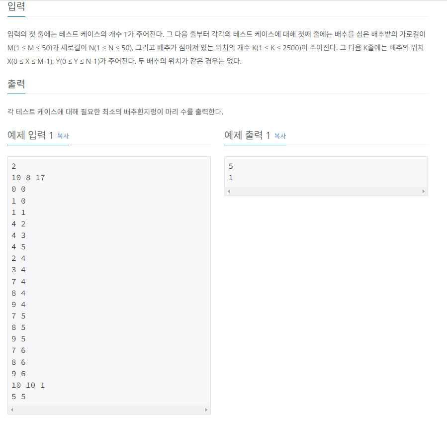 int K = Integer.parseInt(st1.nextToken()); //배추 갯수